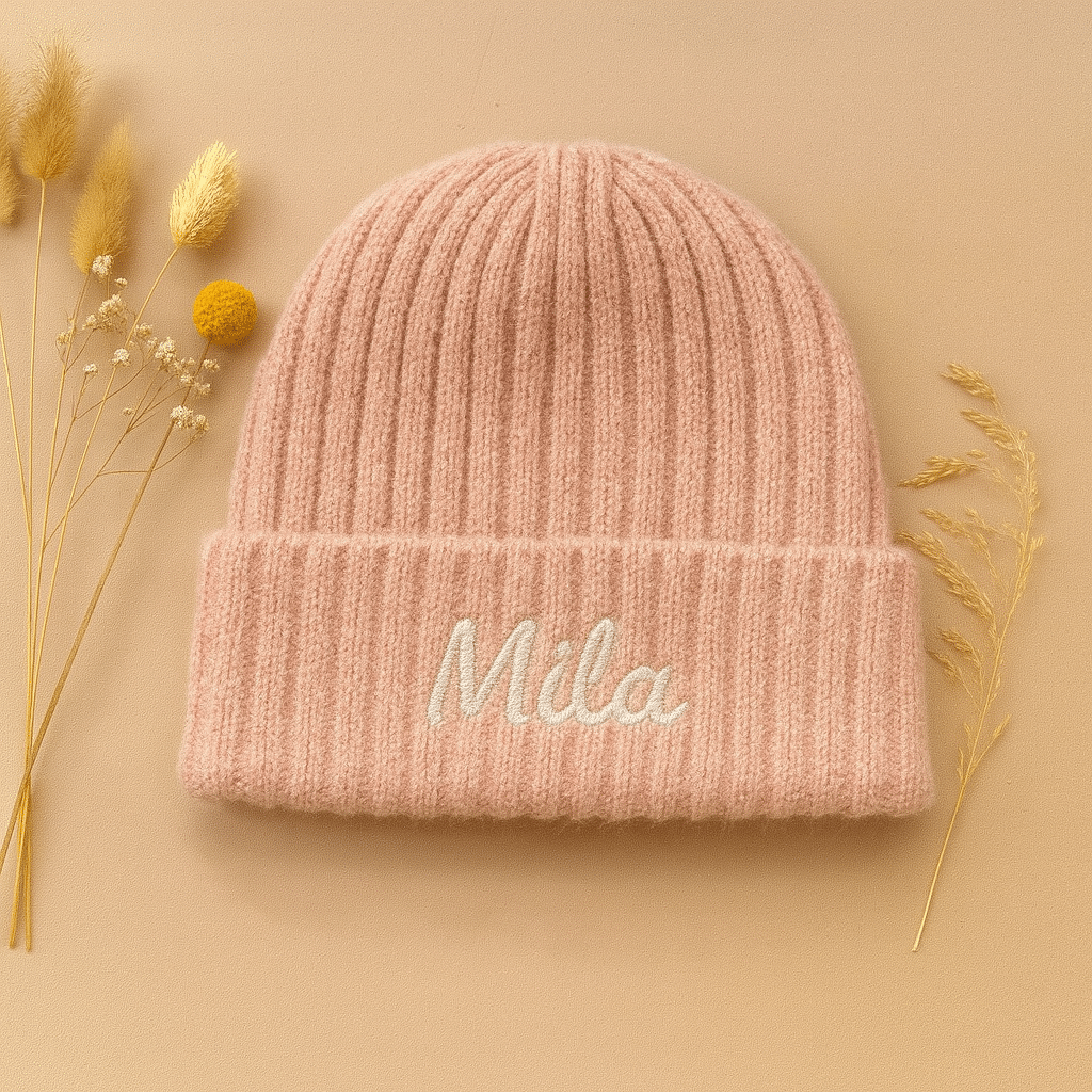 Houd je kleintje heerlijk warm én stijlvol met dit gepersonaliseerde mutsje. Het mutsje is verkrijgbaar in verschillende kleuren en kan worden voorzien van een geborduurde naam in jouw favoriete kleur. Zo maak je er een uniek en persoonlijk item van, perfect voor de koudere dagen.