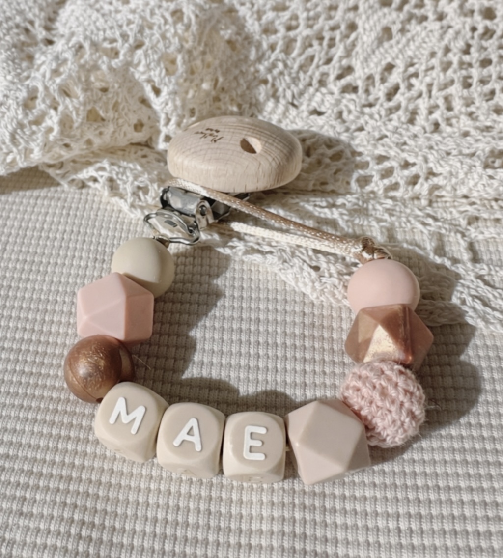 Speenkoord met naam ‘Mae’ / Roest / Zalmroze