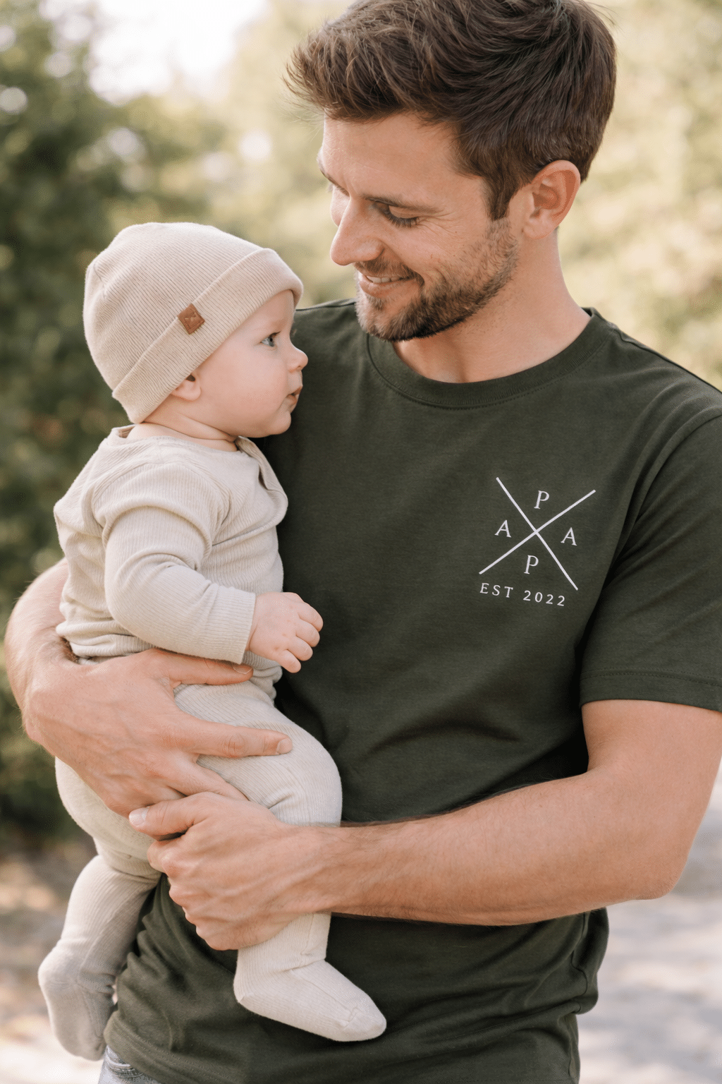 Ontwerp het shirtje zelf met een jaargetal, dit kan je invullen in het vakje “Welke naam mag er op?”. De tekst EST komt er automatisch bij. Dit hoef je dus niet erbij te zetten. Wil je er geen jaargetal bij? Dan hoef je in het vakje niks in te vullen.